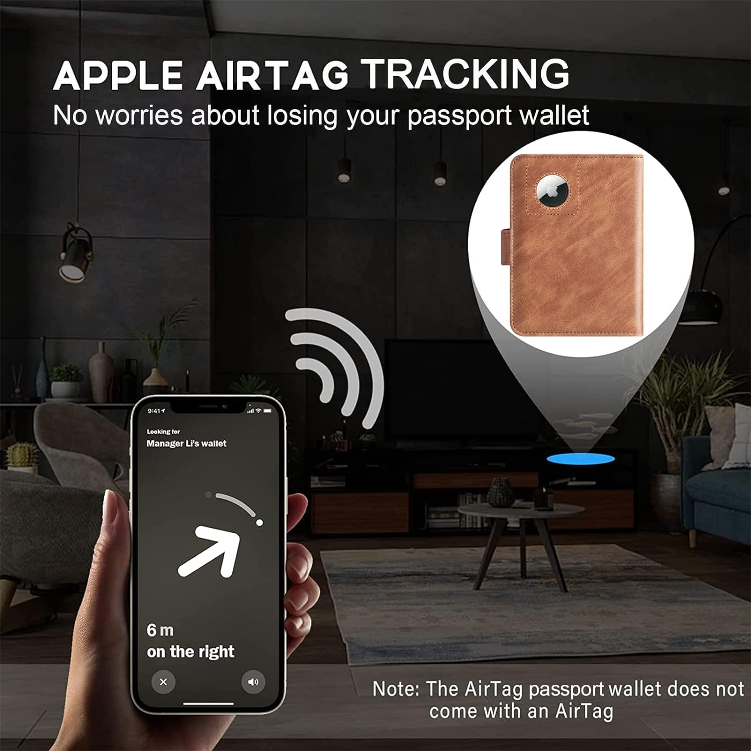 PASSPORT AND AIRTAG HOLDER COMBO – The built-in holder for Apple Air Tag combine passport wallet and AirTag ideally to make sure you never lose your passport wallet again. Misplaced or lost your passport wallet? Keep track of and see where you last had it alongside friends and devices in the Find My app. The AirTag passport wallet does not come with an Airtag.