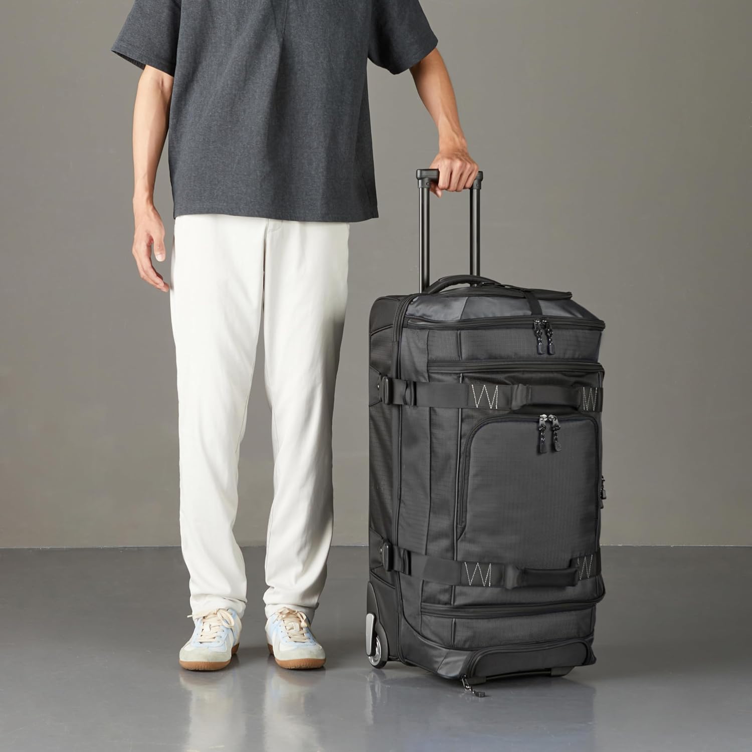 Amazon Basics Ripstop Wheeled Travel Duffel Bag, Telescoping Handle, 30″, Black