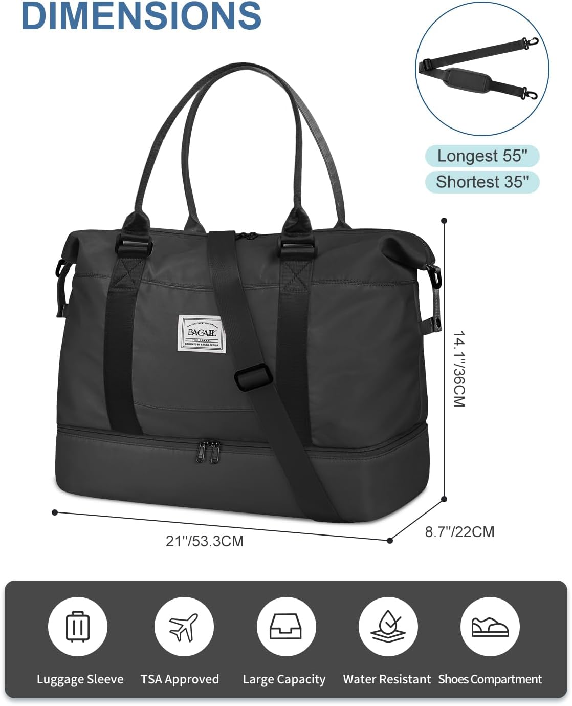 【Easy Carrying Travel Bag】The large capacity and 1.8lb lightweight design make it the best companion for your travel. Equipped with a trolley sleeve and adjustable, removable shoulder straps for comfortable carrying, our travel tote bag is the ideal partner for weekend getaways or extended trips.