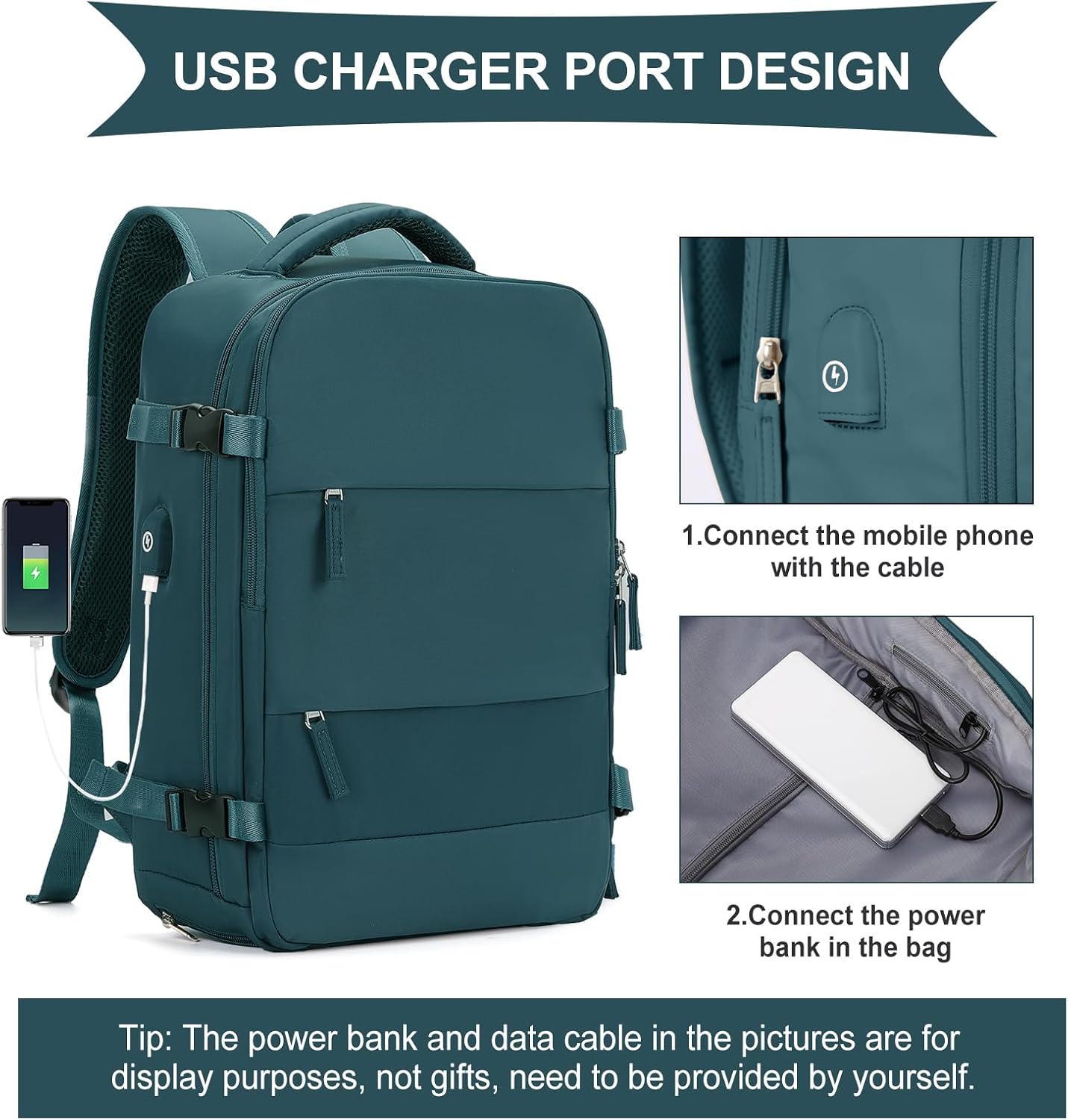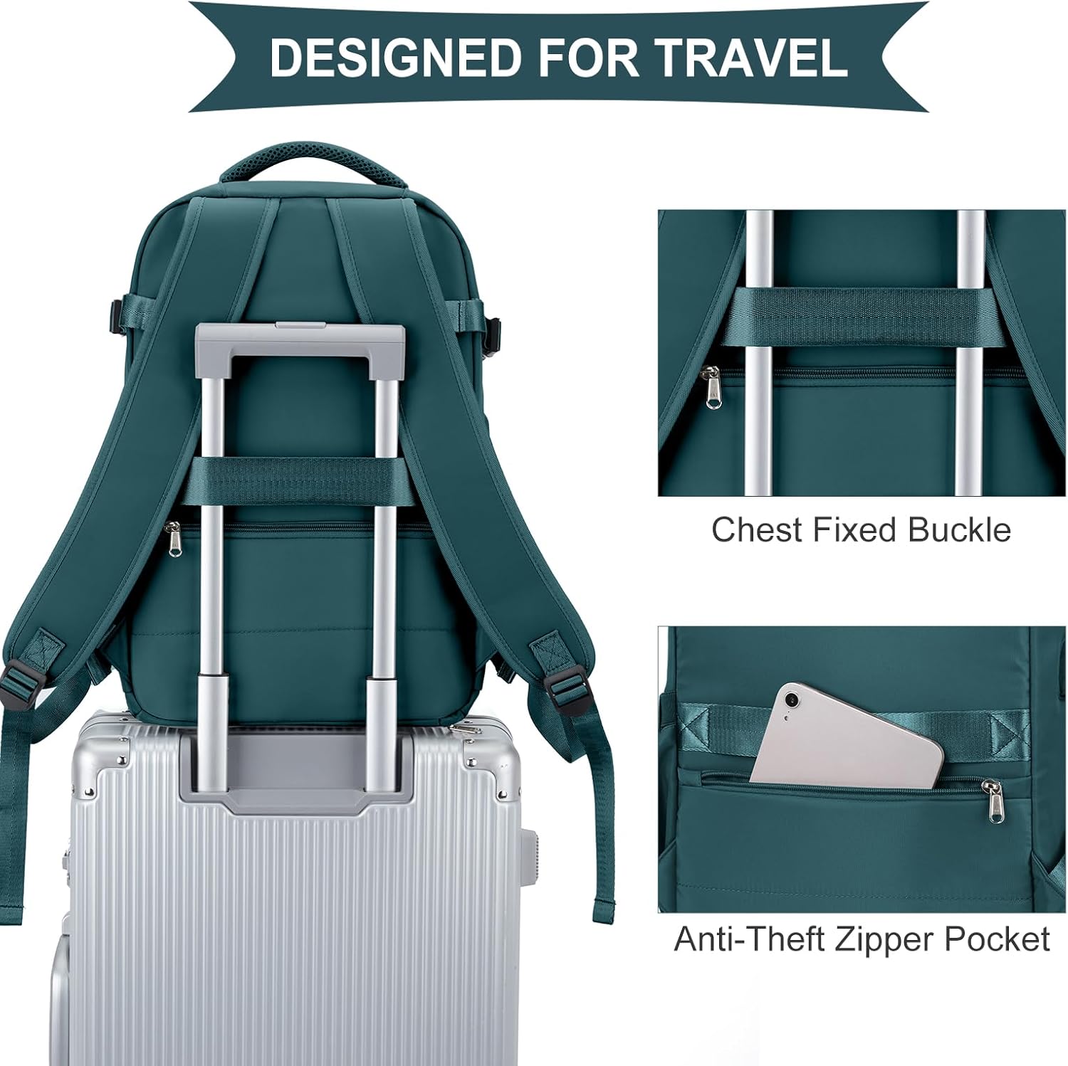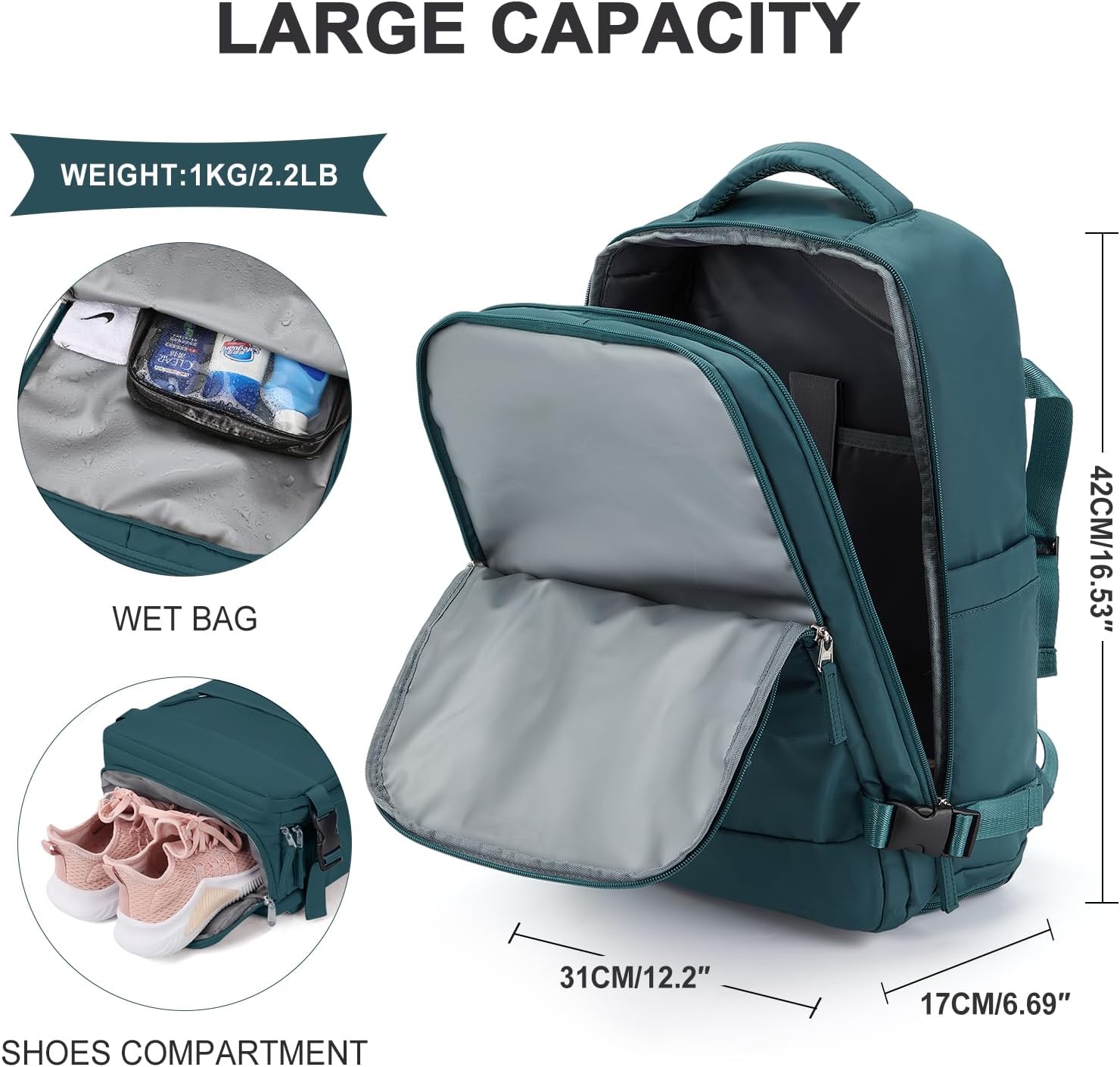 coowoz Large Travel Backpack For Women Men,Carry On Backpack,Hiking Backpack Waterproof Outdoor Sports Rucksack Casual Daypack Travel Essentials(Peacock Blue Minimalist)