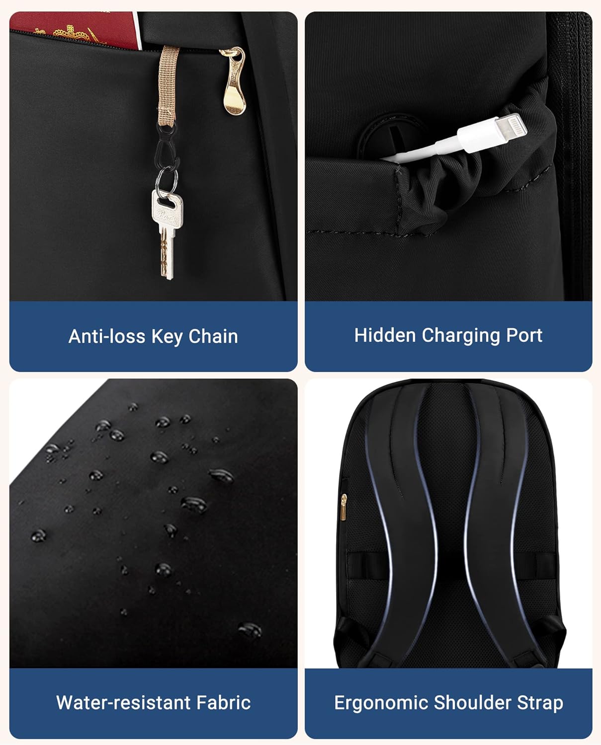 Large Capacity: The separate laptop compartment fits up to a 15.6” laptop. The large main compartment is roomy for daily necessities, such as A4 folders, magazines, tablets, chargers, power bank, and clothes
