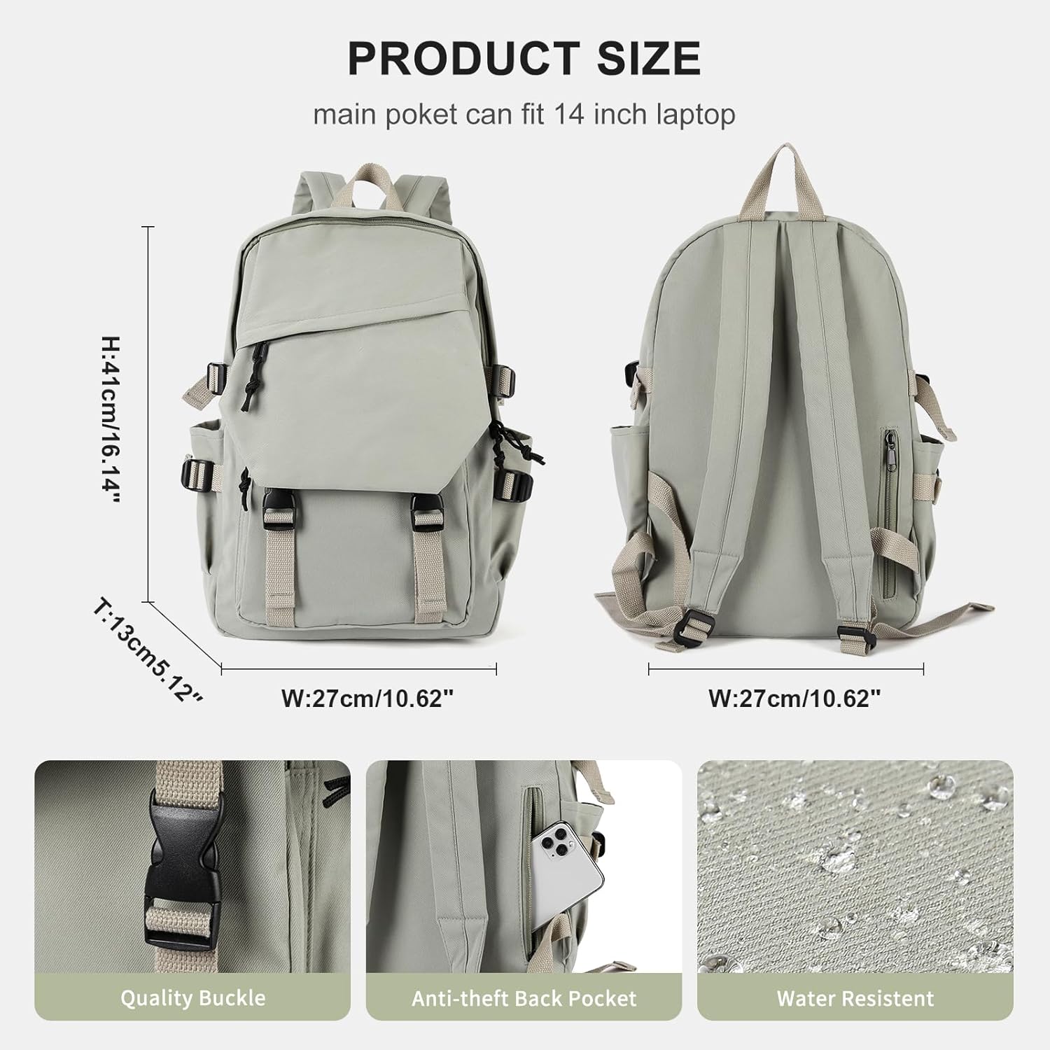 【Updated structure】This college laptop backpack has a top-loading compartment for most gear books and laptops, and can also hold a 14-inch (about 35.6 cm) laptop backpack. The main zipped compartment has a file divider, and two front exterior access to a zipped pocket for pens and highlighters. There are two water bottle pockets on both sides for drinks. An anti-theft zippered pocket for valuables.