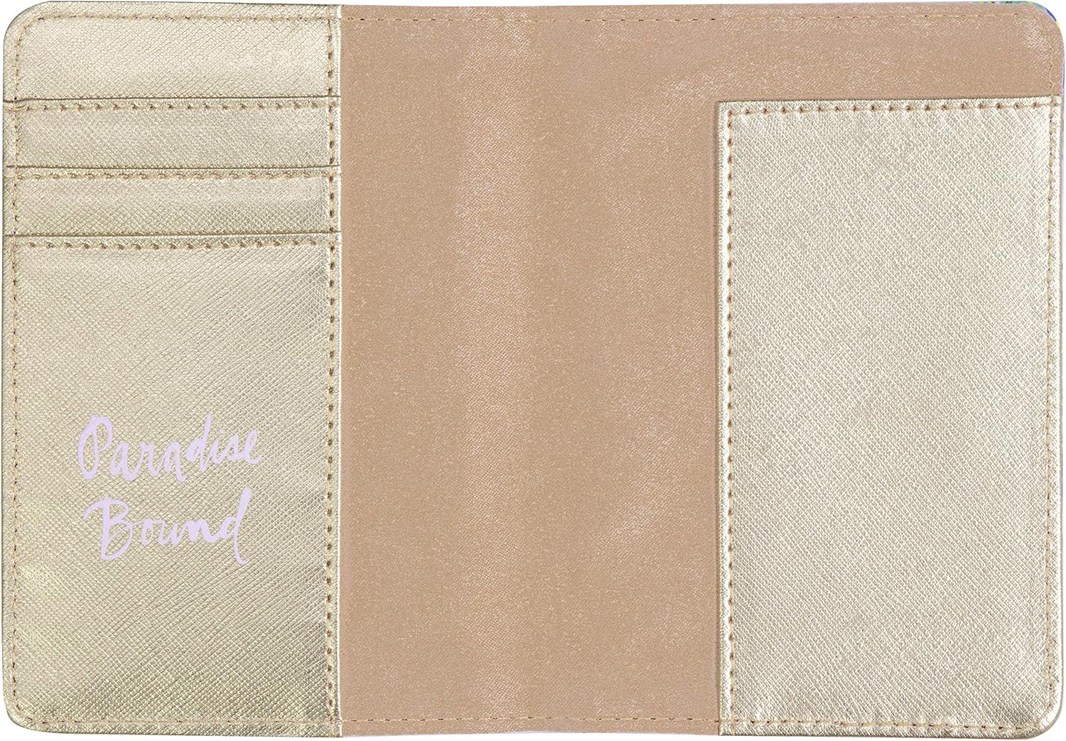 Cute passport holder is made of a durable leatherette (vegan leather) material with a shiny metallic gold interior that keeps all your important items securely in place