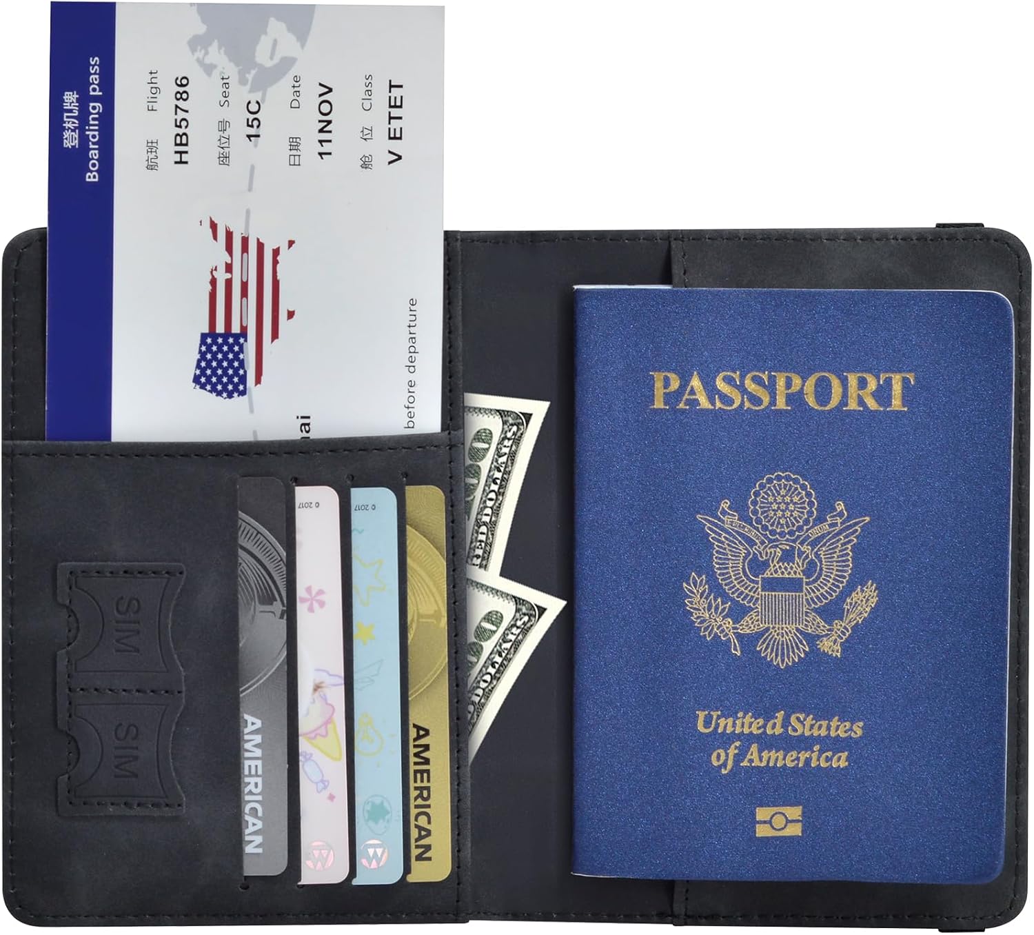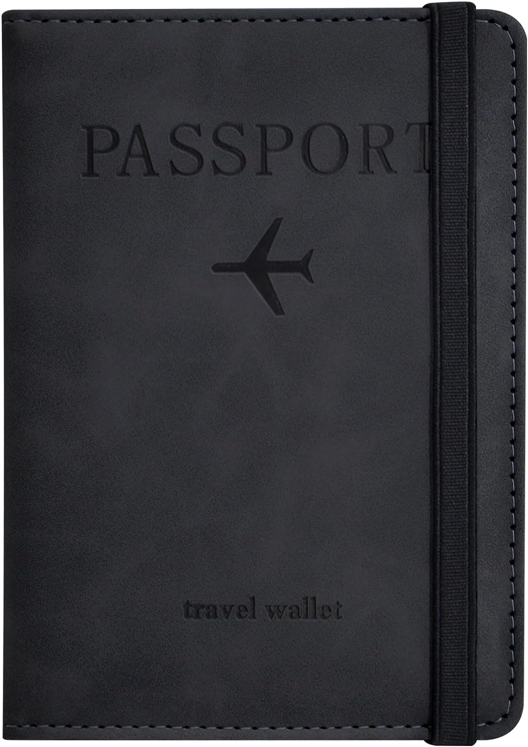 Passport Holder, Passport Cover with Credit Card Slot and Boarding Pass Slot Combo, Passport Wallet Case Book Travel Must Have, RFID Blocking Leather Travel Accessories, Black