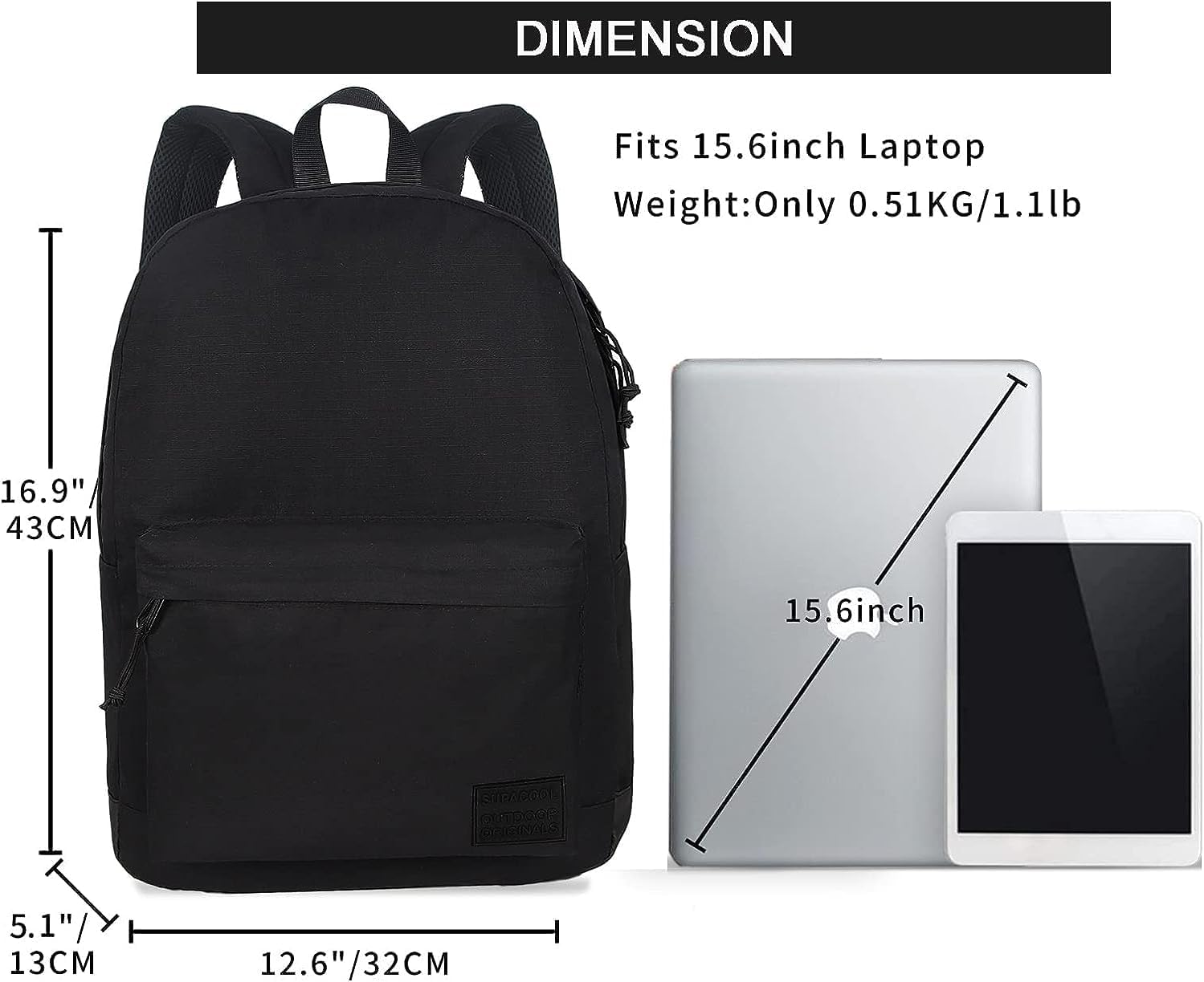 SUPACOOL Lightweight Casual Travel Backpack with USB Charging Port for Men and Women, Laptop Backpack for College School boys and girls, Bookbag, High School Backpack for Teens (Full Black)